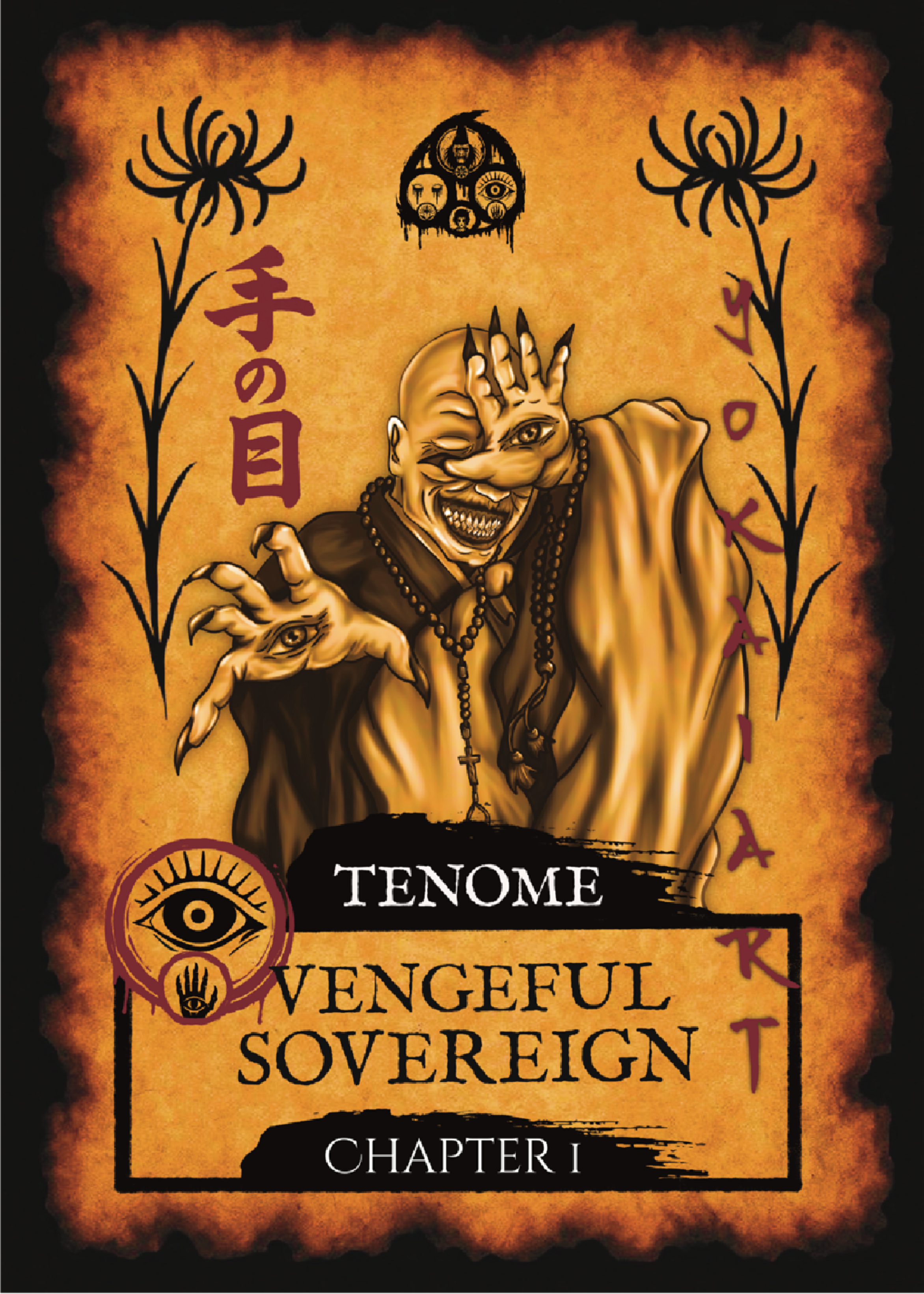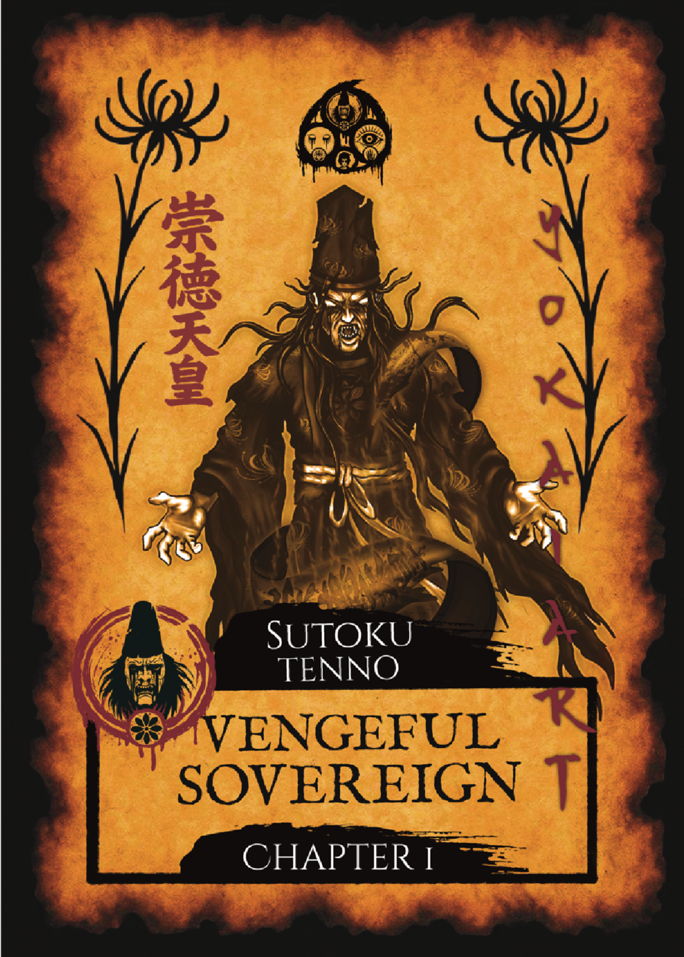 Each design includes a chapter-numbered lore card, crafted as an artifact from the emperor’s curse — telling the origin of your yokai.